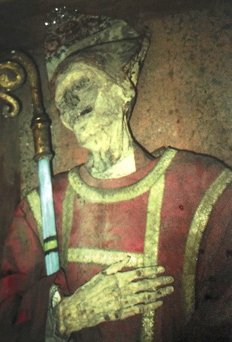 Durante todo este tiempo, la cajonera se abrió muy contadas veces. Una de ellas a petición de Carmen Polo, la esposa del Caudillo. A la ilustre consorte debía de producirle morbo la historia del obispo insepulto y quiso contemplarlo con sus propios ojos. Sobre el pecho de la momia, sujeto con unos largos dedos embalsamados, había un ejemplar de las Odas de Horacio, lo que dice mucho sobre el carácter del prelado.