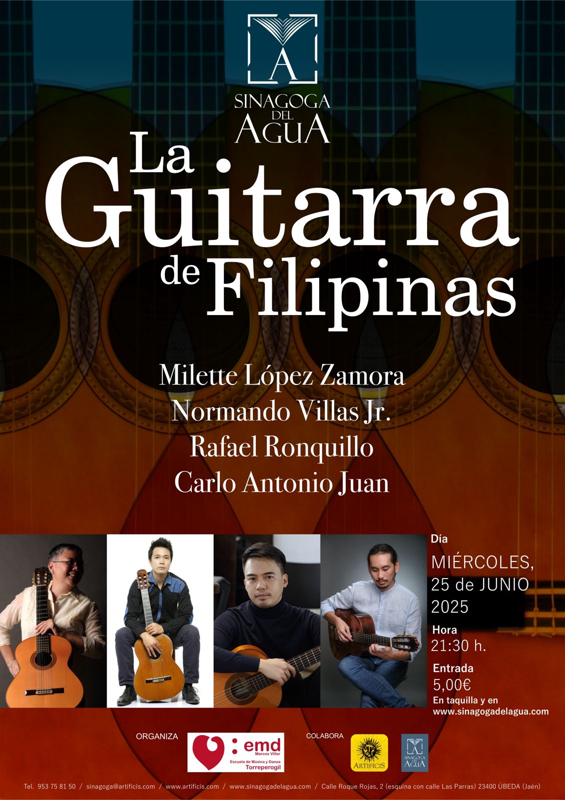 Concierto Guitarras de Filipinas en la Sinagoga del Agua PROGRAMA I. Lágrima Francisco Tárrega II. Granada Isaac Albéniz arr. Manuel Barrueco III. Kojo No Tsuki (Luna sobre un castillo arruinado) IV. Canción y Danza n. 1 Rentaro Taki arr. Muriel Anderson Antonio Ruiz-Pipó Milette Lopez Zamora, guitarra V. La Catedral VI. Recuerdos de la Alhambra […]