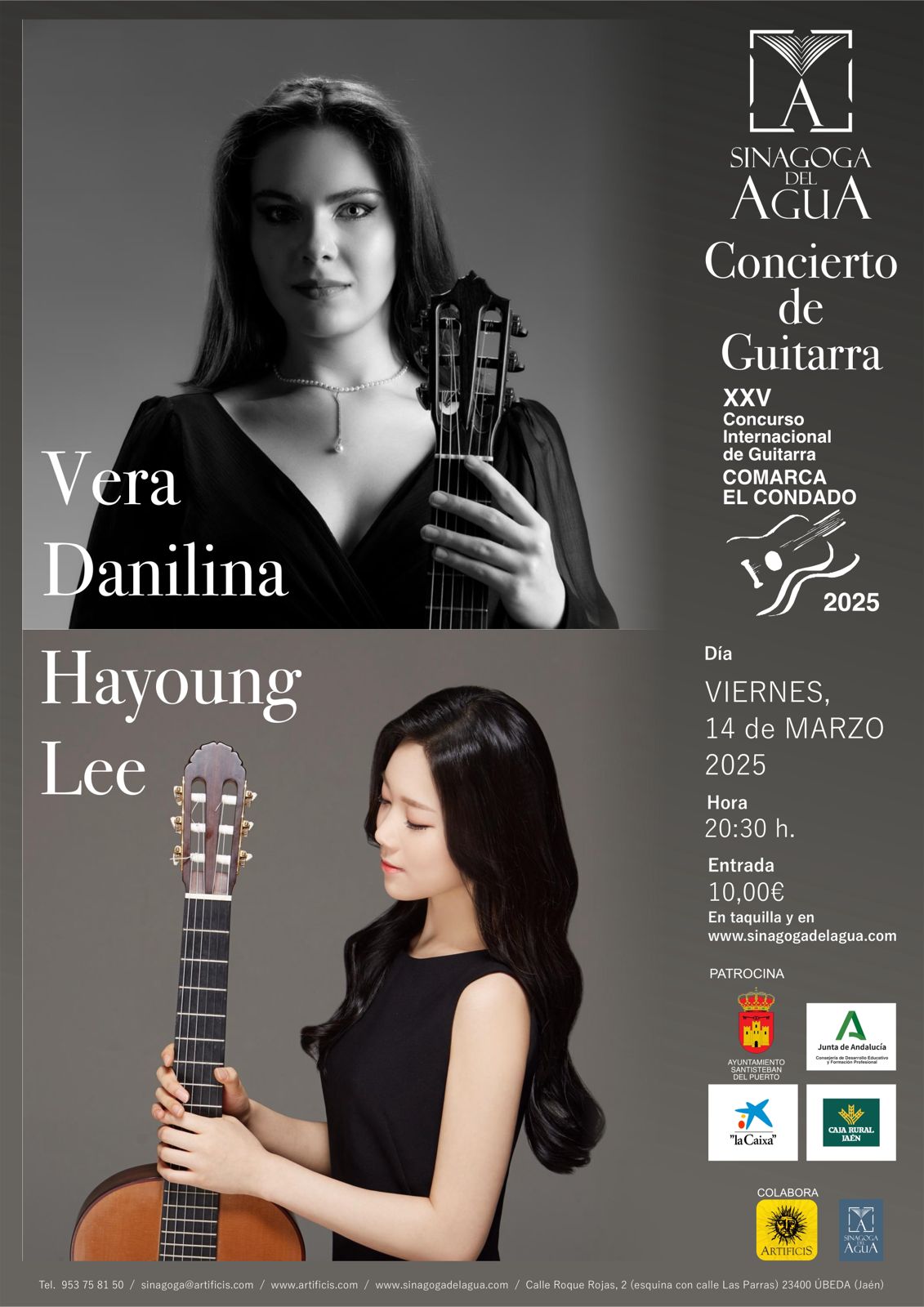 Vera Damilina y Hayoung Lee en la Sinagoga del Agua Dentro de la programación de la XXV Edición del Concurso de Guitarra Comarca del Condado, y bajo el Patrocinio del Ayuntamiento de Santisteban del Puerto, Junta de Andalucía, la Fundación Caixa y Fundación Caja Rural de Jaén tendremos el placer de recibir en la Sinagoga […]