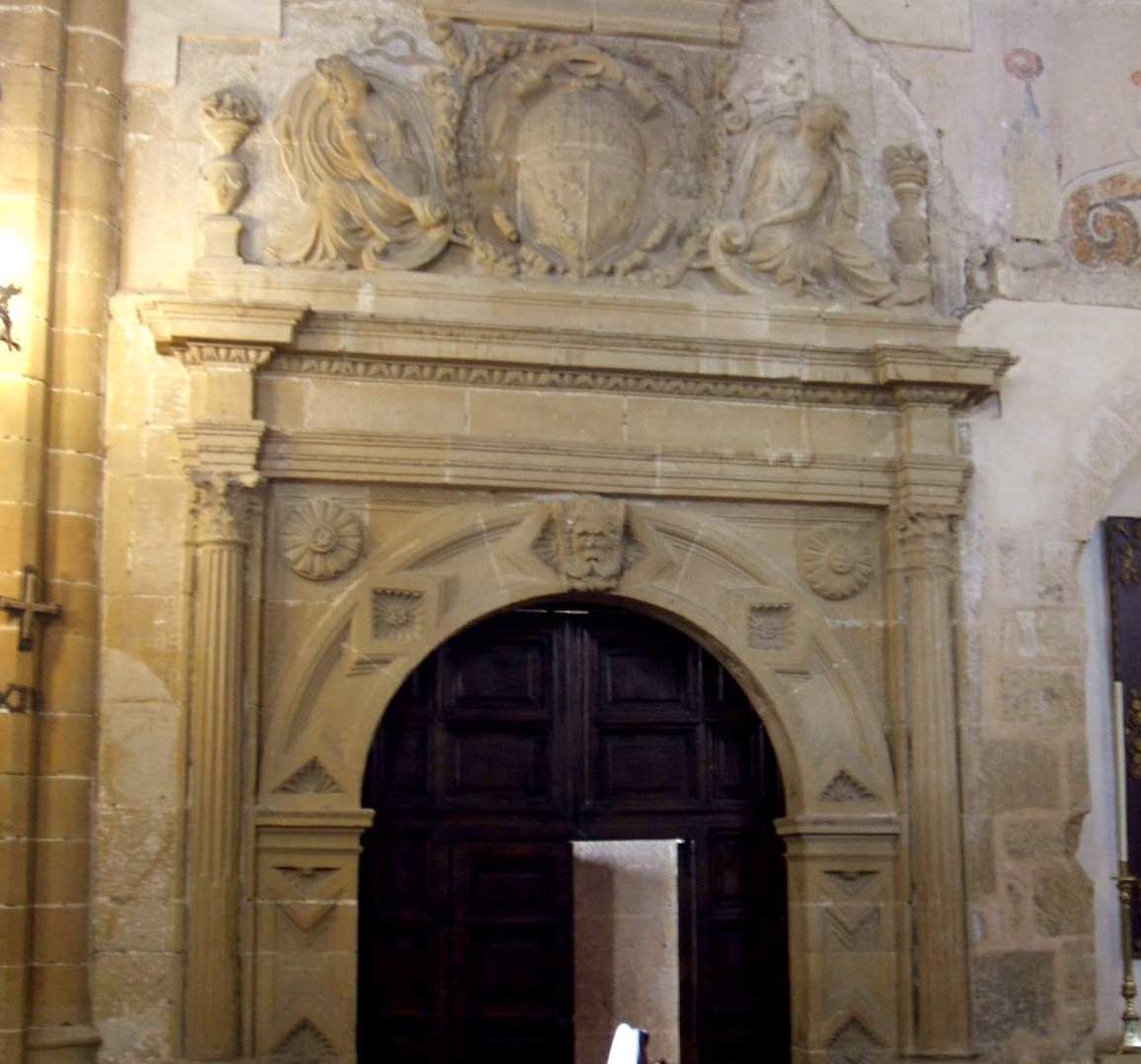 Ejemplo de ello es la portada sur, levantada en el año 1509 por mandato de Alonso Suárez de la Fuente del Sauce, nuestro obispo constructor. Sus escudos episcopales lucen entre la filigrana y el delicado encaje de la piedra, propio del gótico flamígero. La portada guarda bastantes similitudes con otra perteneciente a la iglesia de San Isidoro. Este último templo también fue alzado en los arrabales de la ciudad y sufragado por el mismo obispo de la diócesis de Jaén.